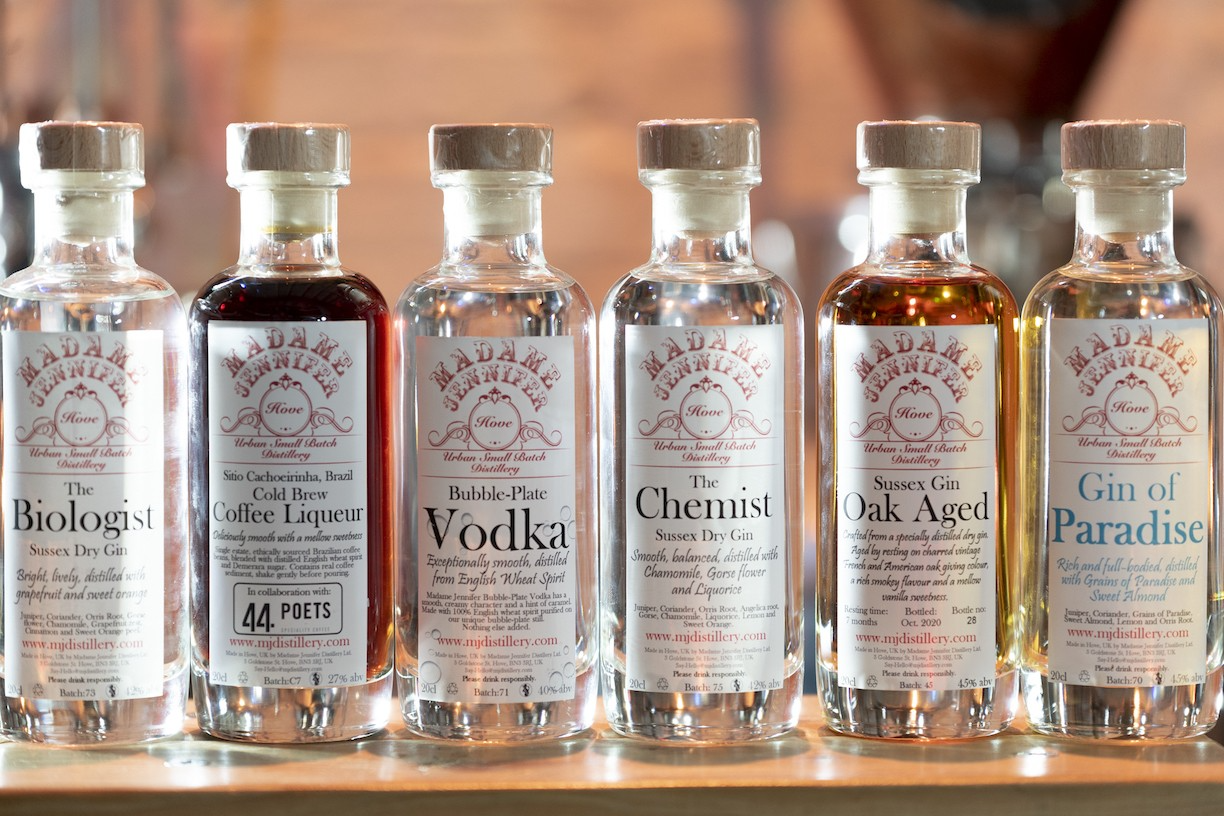 Madame Jennifer Distillery is a small independent distillery in Poets Corner, Hove, founded in 2017 by Inger (a biologist) and Ian (a chemist).